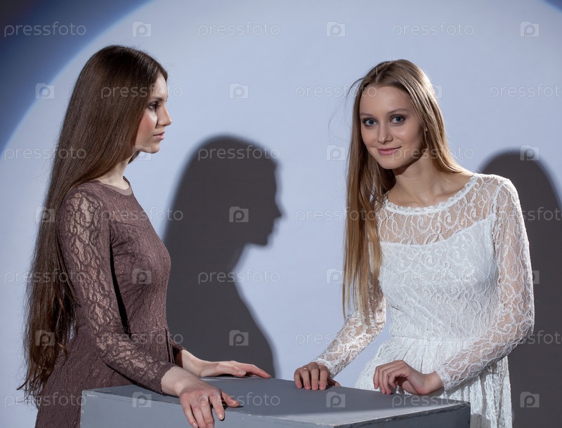 Две красивые девушки позируют в стильных платьях
