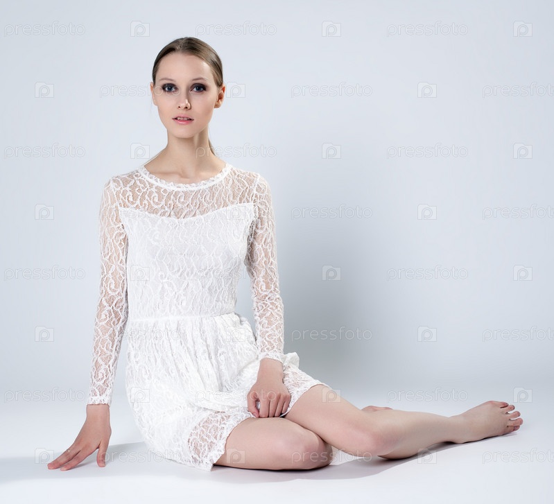 Хрупкая девушка в белом кружевном платье