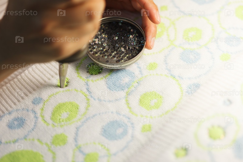 Женщина клеит стразы