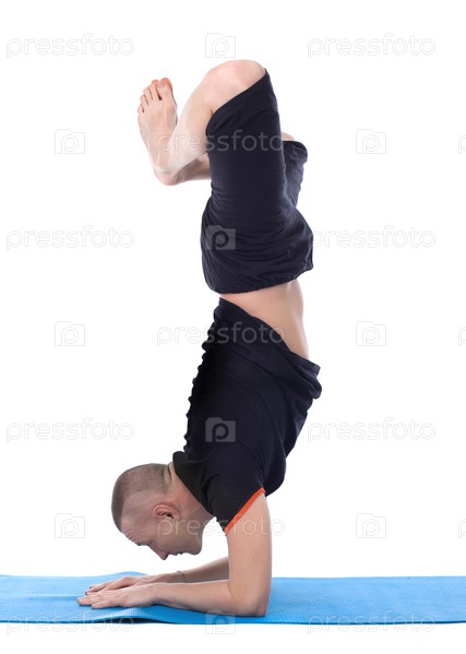 Спокойный человек делает стойку из йоги