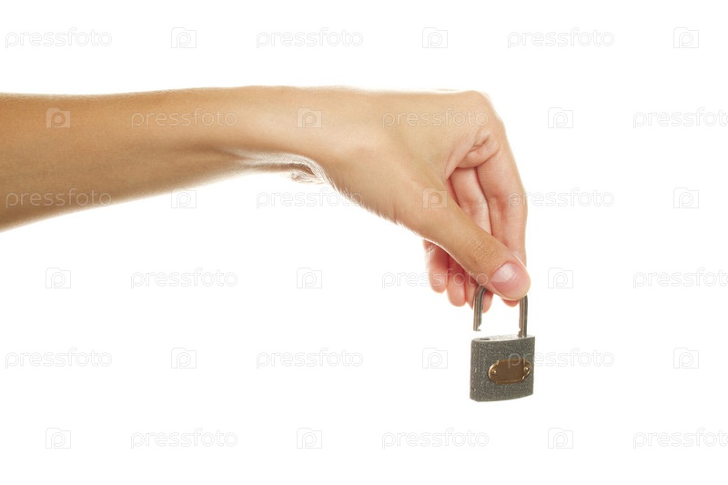 Женская рука с замком, изолированная на белом фоне