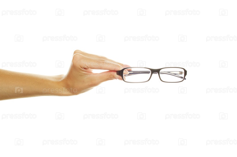 Женская рука с очками, изолированная на белом фоне