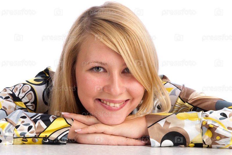 Красивая юная улыбающаяся женщина, изолированная на белом фоне