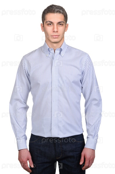 Мужчина в рубашке на белом фоне