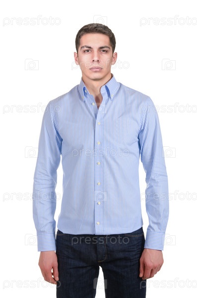 Мужчина в рубашке на белом фоне