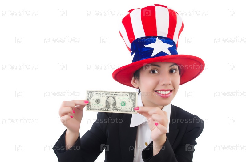 Молодая женщина с долларами США