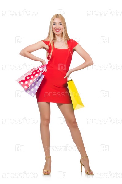 Молодая женщина с бумажными пакетами