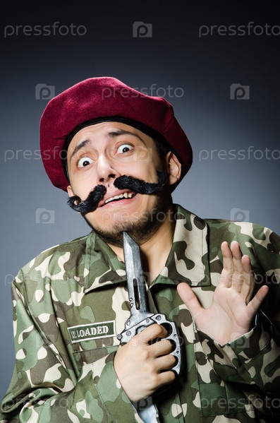 Смешной солдат на темном фоне