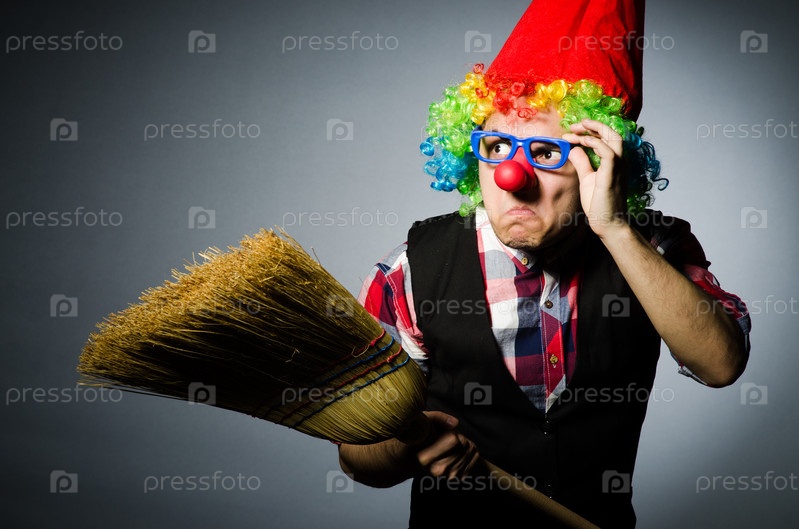 Смешной клоун с метлой
