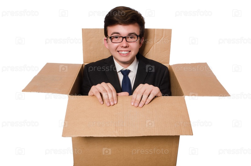 Забавный человек в коробке