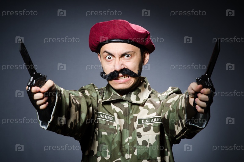 Смешной солдат на темном фоне