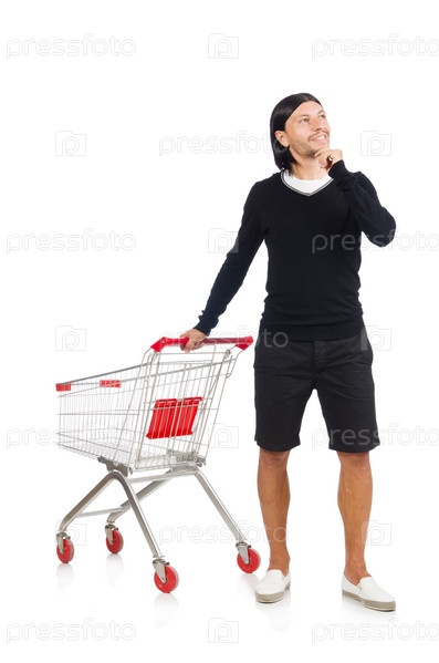 Человек с магазинной тележкой