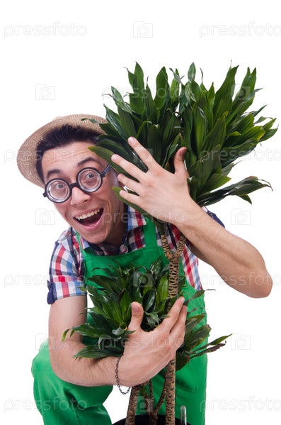 Забавный человек и растение
