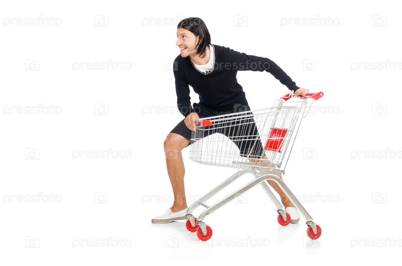 Человек с магазинной тележкой