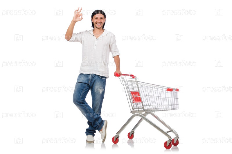 Человек с магазинной тележкой