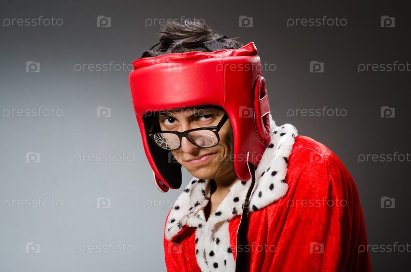 Смешной боксер в красны перчатках на темном фоне