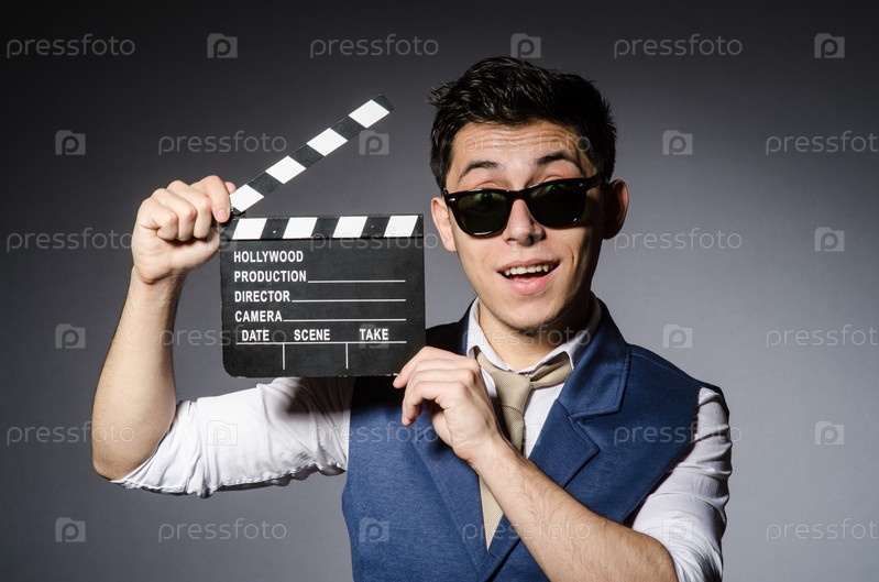 Забавный человек с хлопушкой