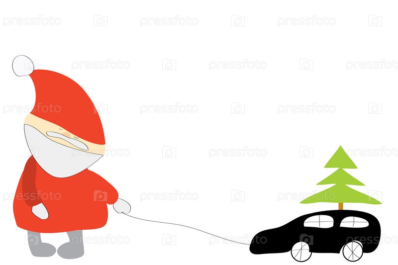 Санта-Клаус и машина с елкой