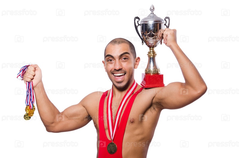 Борец в красном костюме, изолированный на белом