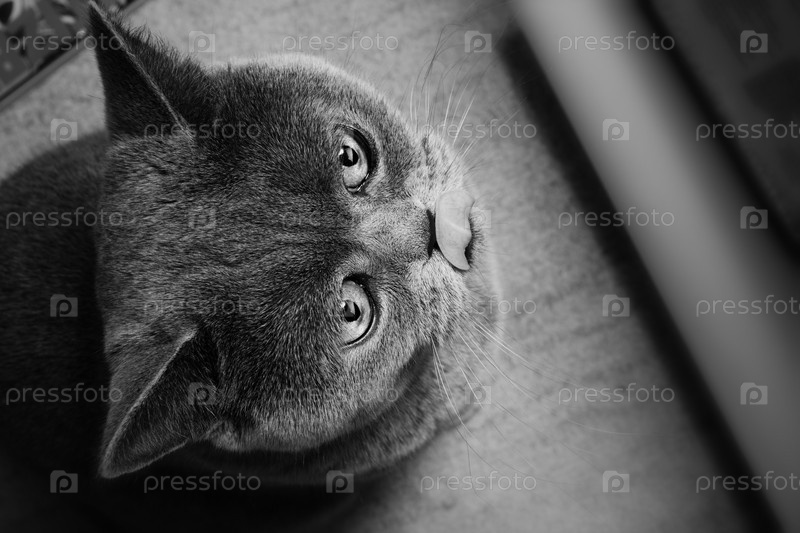 Серый британский кот крупным планом