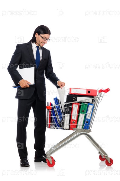 Бизнесмен с корзиной документов