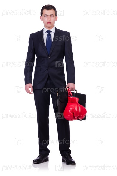 Молодой бизнесмен в боксерских перчатках