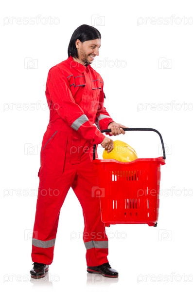 Рабочий с корзиной для покупок