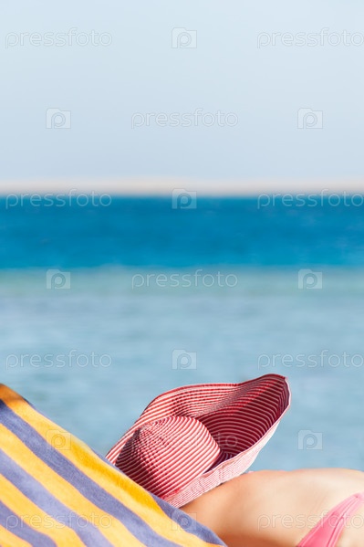 Девушка загорает на берегу моря