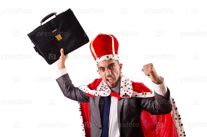Бизнесмен в короне, изолированный на белом
