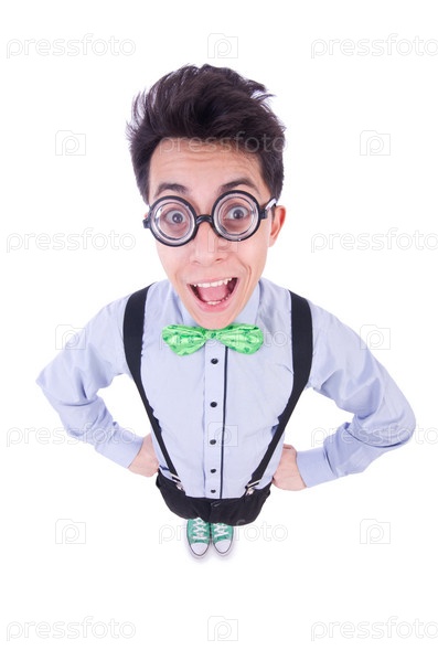 Забавный парень на белом фоне
