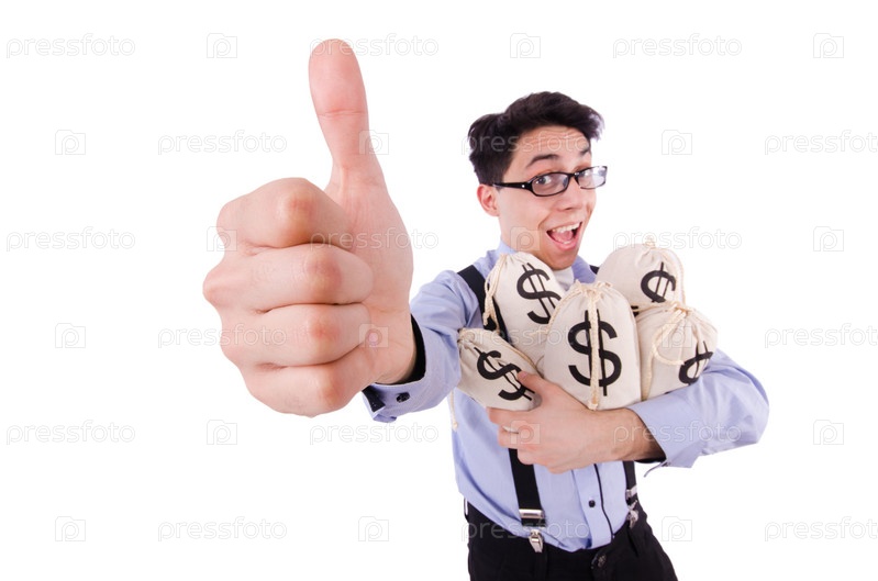 Забавный парень с мешками денег