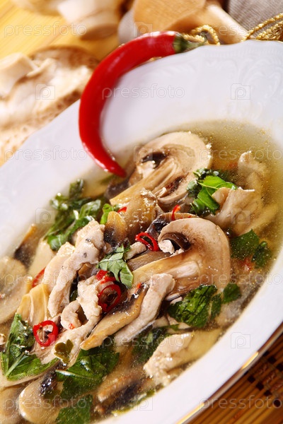 Грибной суп с курицей и красным перцем