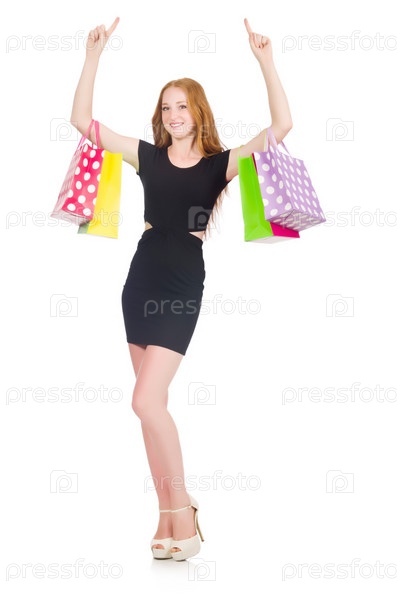 Женщина с покупками на белом фоне