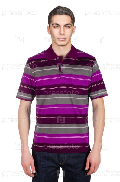 Мужчина в футболке, изолированный на белом фоне