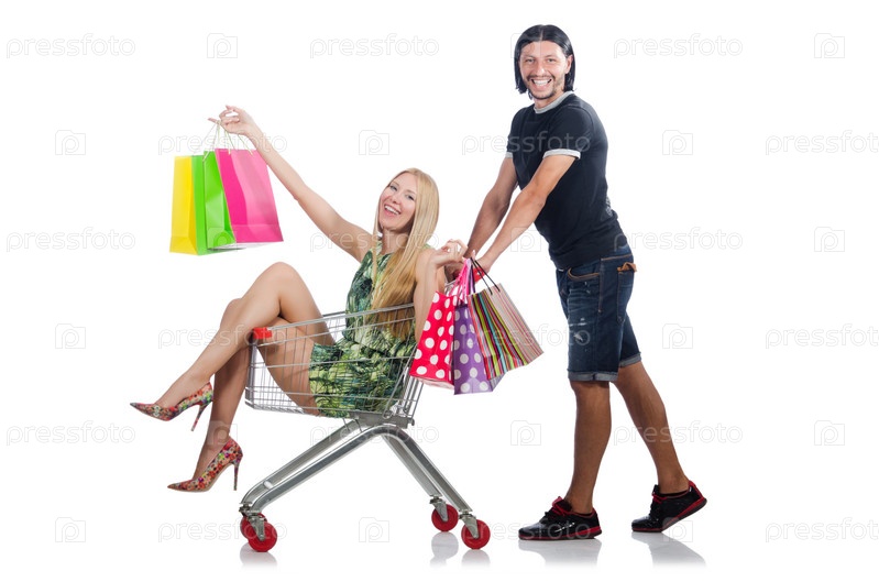 Семейная пара с магазинной тележкой