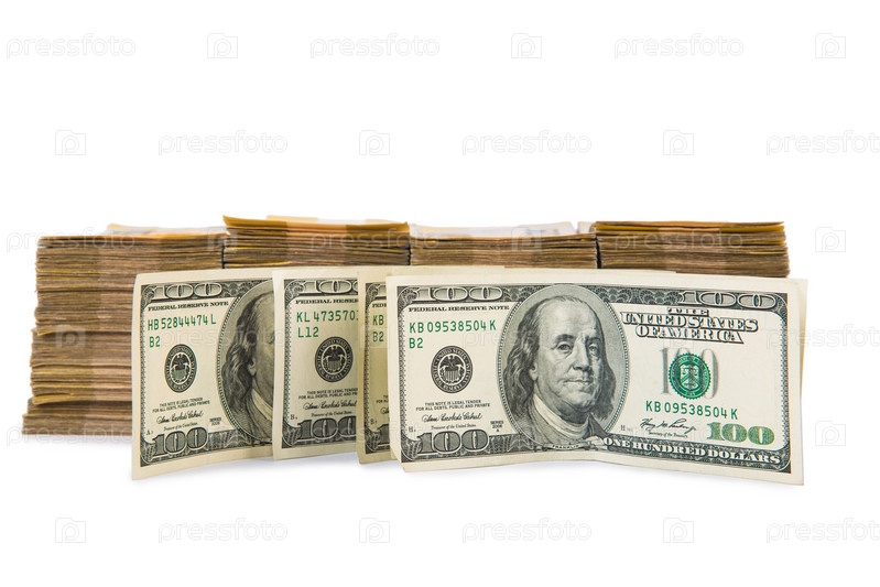 Стопка американских долларов, изолированная на белом