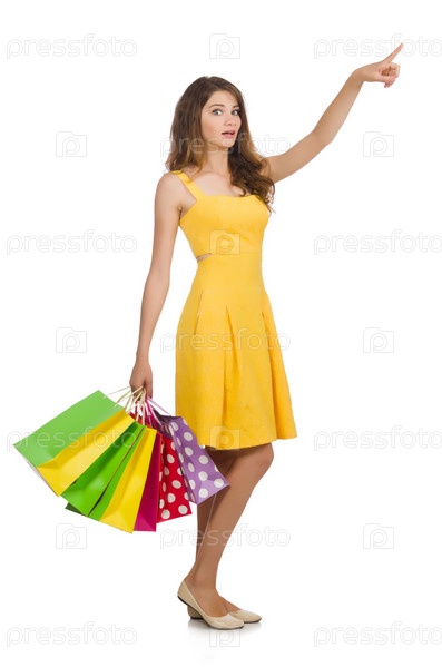 Женщина с покупками на белом фоне