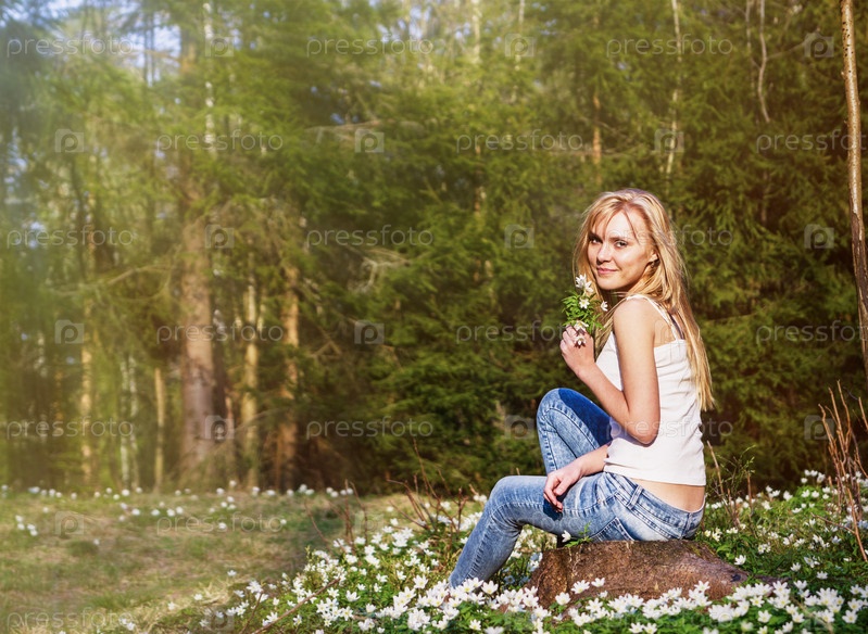 Молодая блондинка среди луговых цветов
