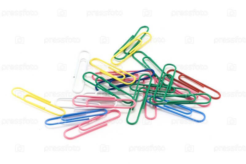 Офисные сцепки, цвет, расположение, изолированное на белом фоне