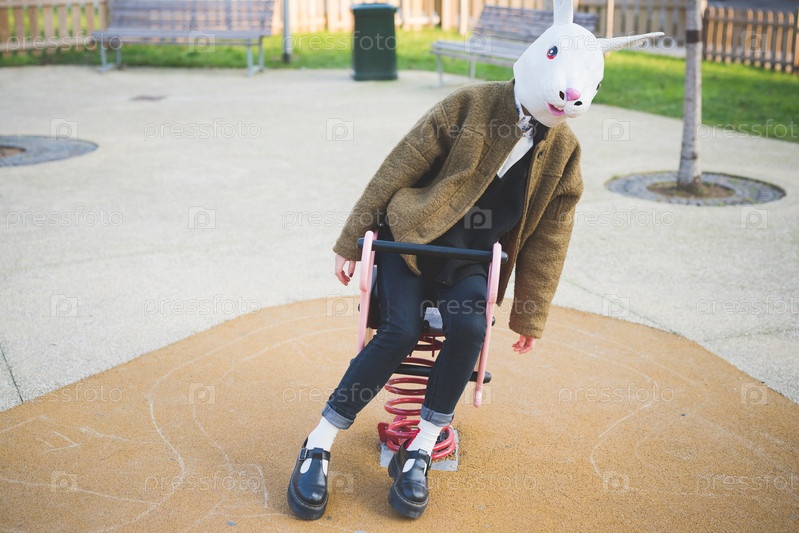 Женщина в хипстерской маске кролика