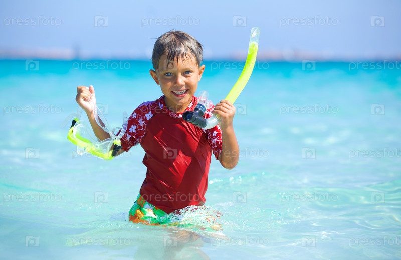 Мальчик занимается подводным плаванием