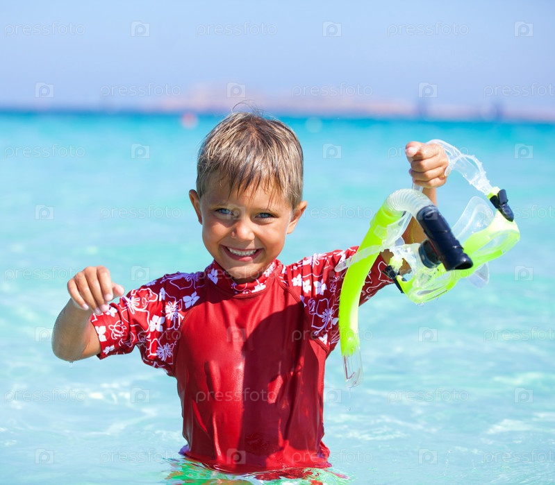Мальчик занимается подводным плаванием
