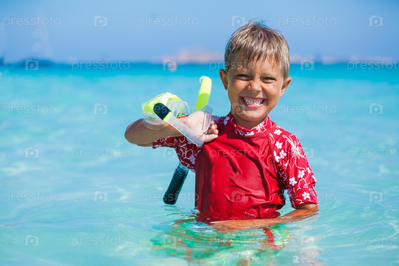 Мальчик занимается подводным плаванием