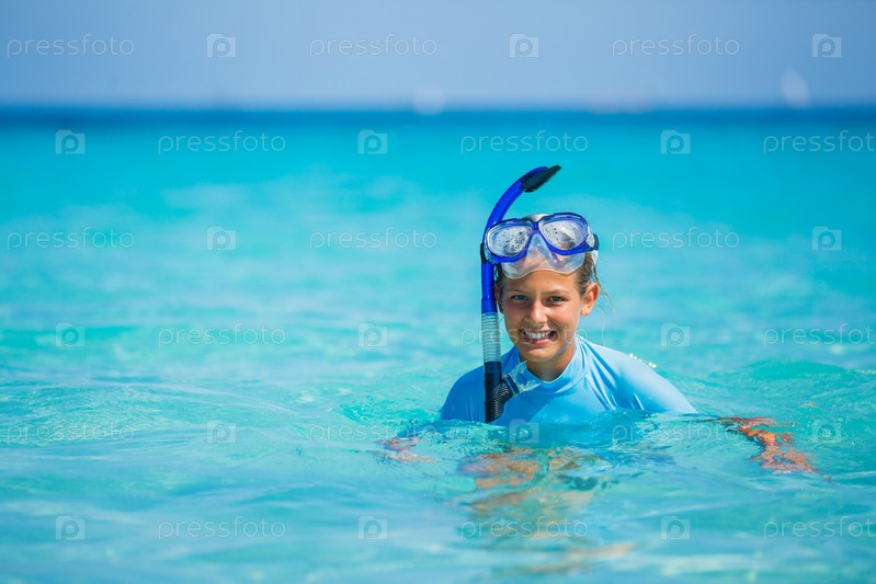 Девочка занимается подводным плаванием
