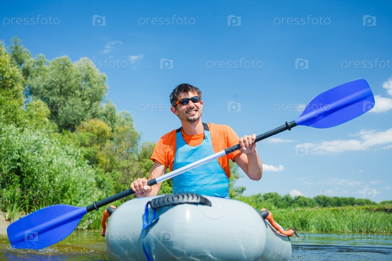 Мужчина в резиновой лодке