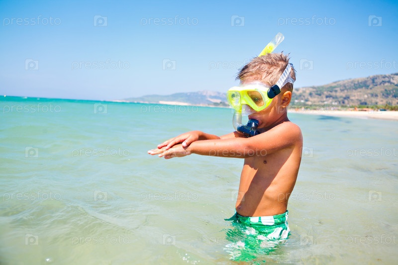 Мальчик занимается подводным плаванием