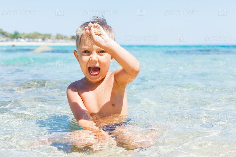 Мальчик купается в море