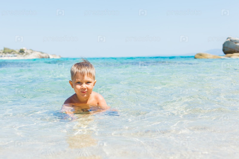 Мальчик купается в море