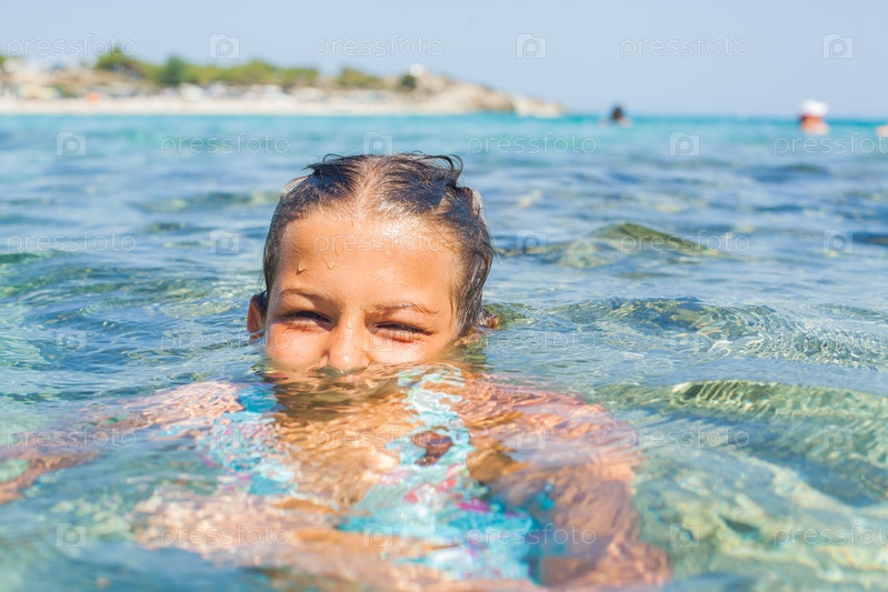 Девочка купается в море