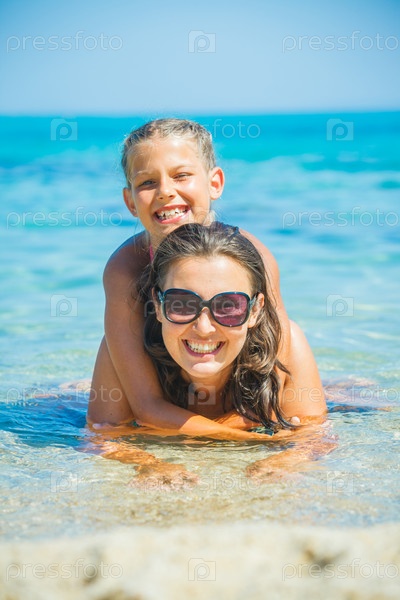 Семья купается в море